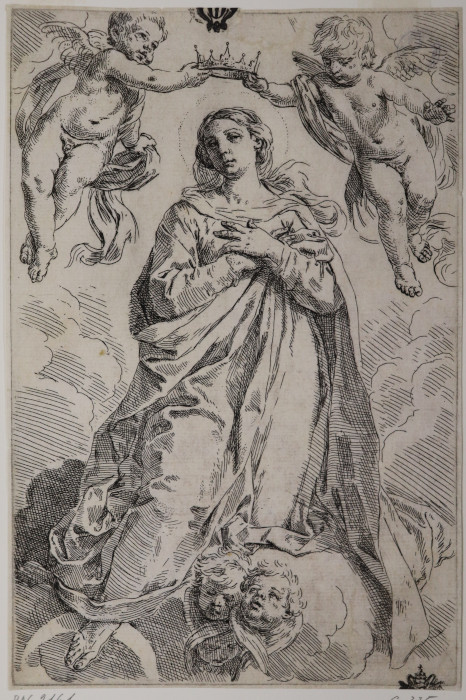 Malvasia 1678 (1841), I, p. 99; Oretti, B 128, c. 446e; Gori Gandellini 1771, I, p. 218; Le Blanc 1854 (1970), I, p. 582, n. 21; Emiliani 1959, p. 454, n. 21; Gaeta Bertelà e Ferrara 1973, n. 110; Mancigotti 1975, p. 202, n. 126; L'opera incisa di Simone Cantarini 1980, pp. 118-120, n. 28; Bartsch 1981, p. 91, n. 21; Simone Cantarini detto il Pesarese 1997, p. 330, n. III.15 (III stato).