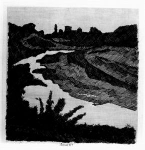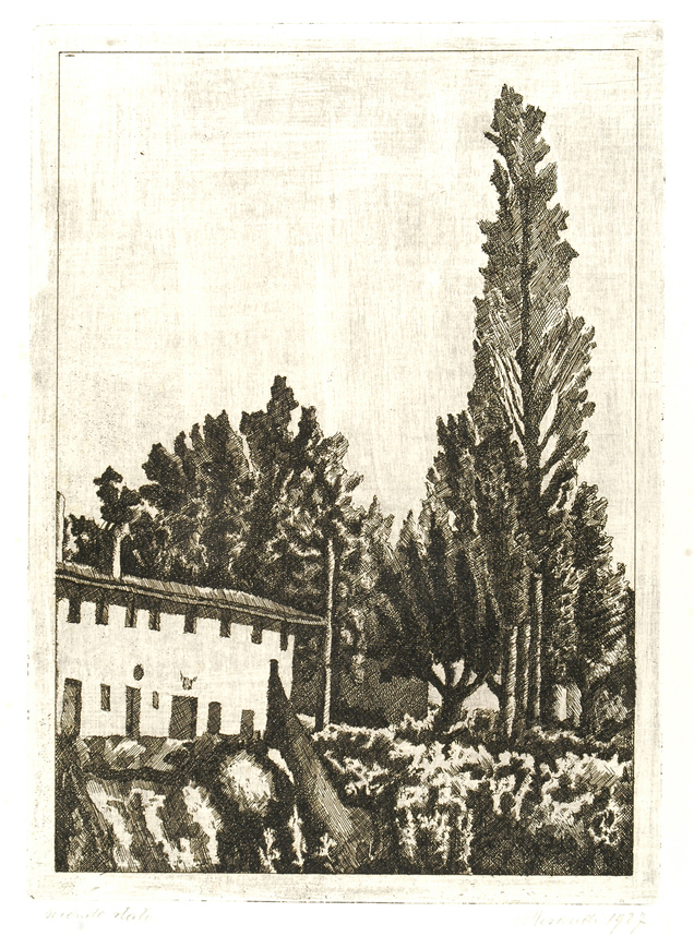 Fig. 1: Giorgio Morandi, Paesaggio sul Savena, acquaforte, Musei Nazionali di Bologna, Pinacoteca Nazionale, Gabinetto Disegni e Stampe, inv. TIP. 30960
